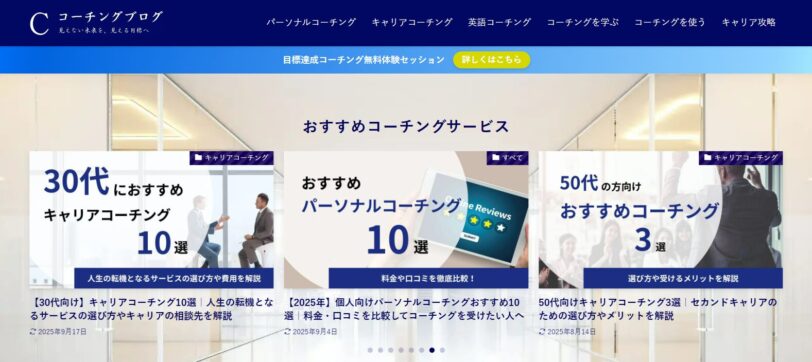 「コーチングのノウハウ」や「おすすめのコーチングサービス」、「20代のキャリア攻略方法」などの記事をまとめさせていただいています。