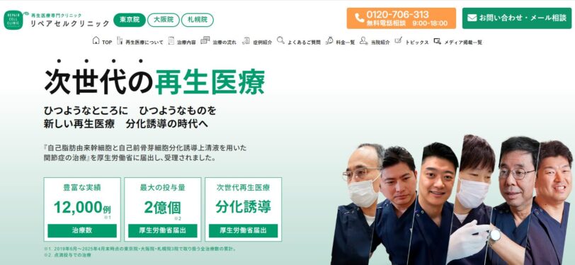 リペアセルクリニックは12,000例の治療実績(2025年4月末時点)と優れた治療効果で知られ、再生医療に精通した専門医が在籍しています。これまでの実績が認められ、様々な著書の執筆やテレビなどのメディアからも多くの取材を受けています。