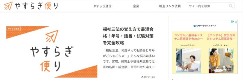 介護や福祉のことをもっと身近に感じる情報が多いやすらぎ便りは、暮らしの中で役立つ制度や支援、仕事情報をわかりやすく紹介している情報サイトです。