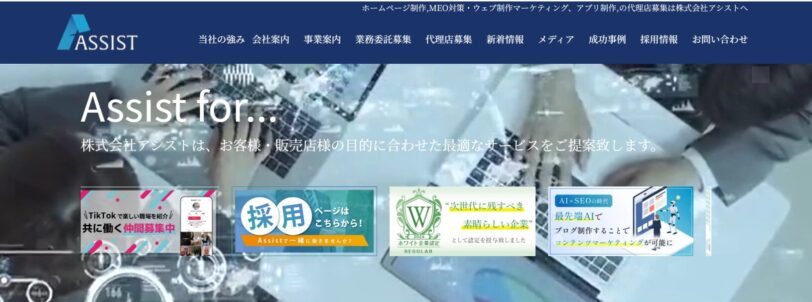 アシストが運営するメディアで、Web制作・SEO・MEO対策などの実務に役立つ情報がまとめられています。企業や店舗の集客力を高めたい方に向けて、わかりやすく解説された記事が多数掲載されています。